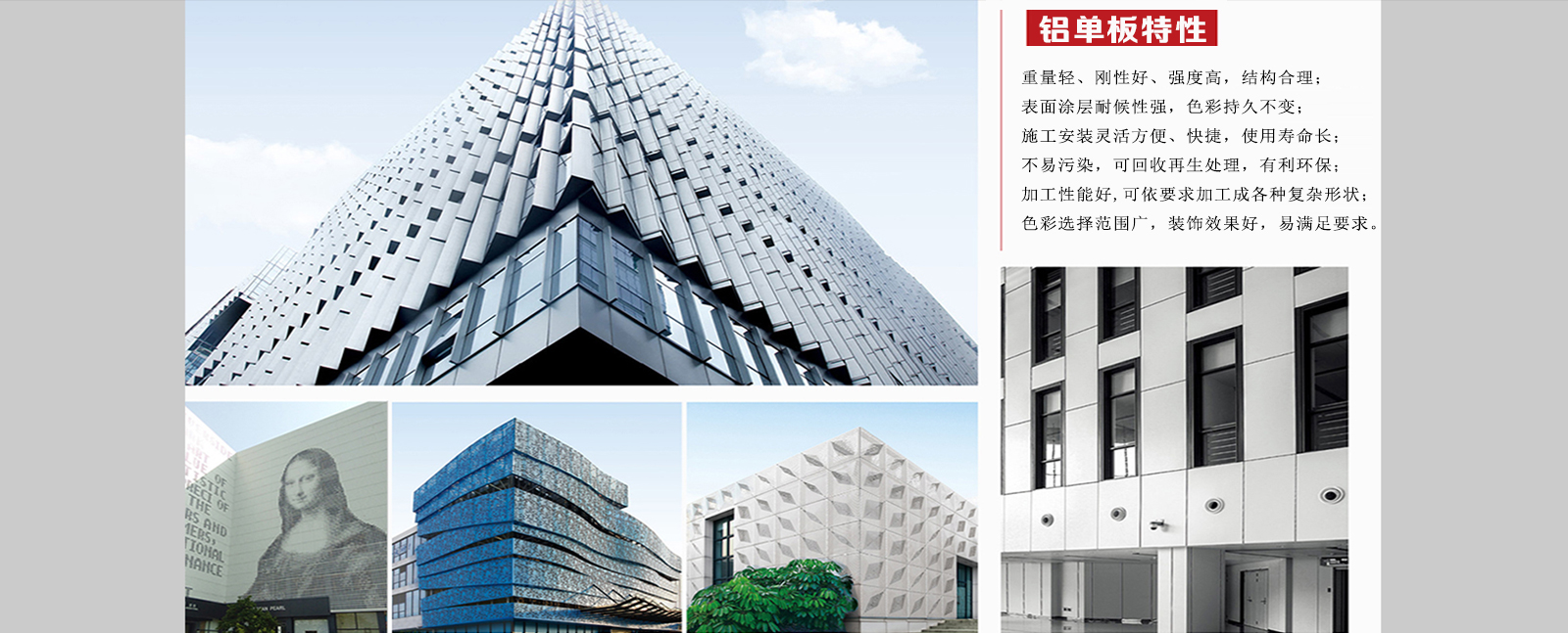鋁單板工程案例可應(yīng)用于:建筑物外墻、梁柱、門頭、陽臺(tái)、雨棚、廣告牌、室內(nèi)建筑裝飾、商業(yè)大樓、別墅…